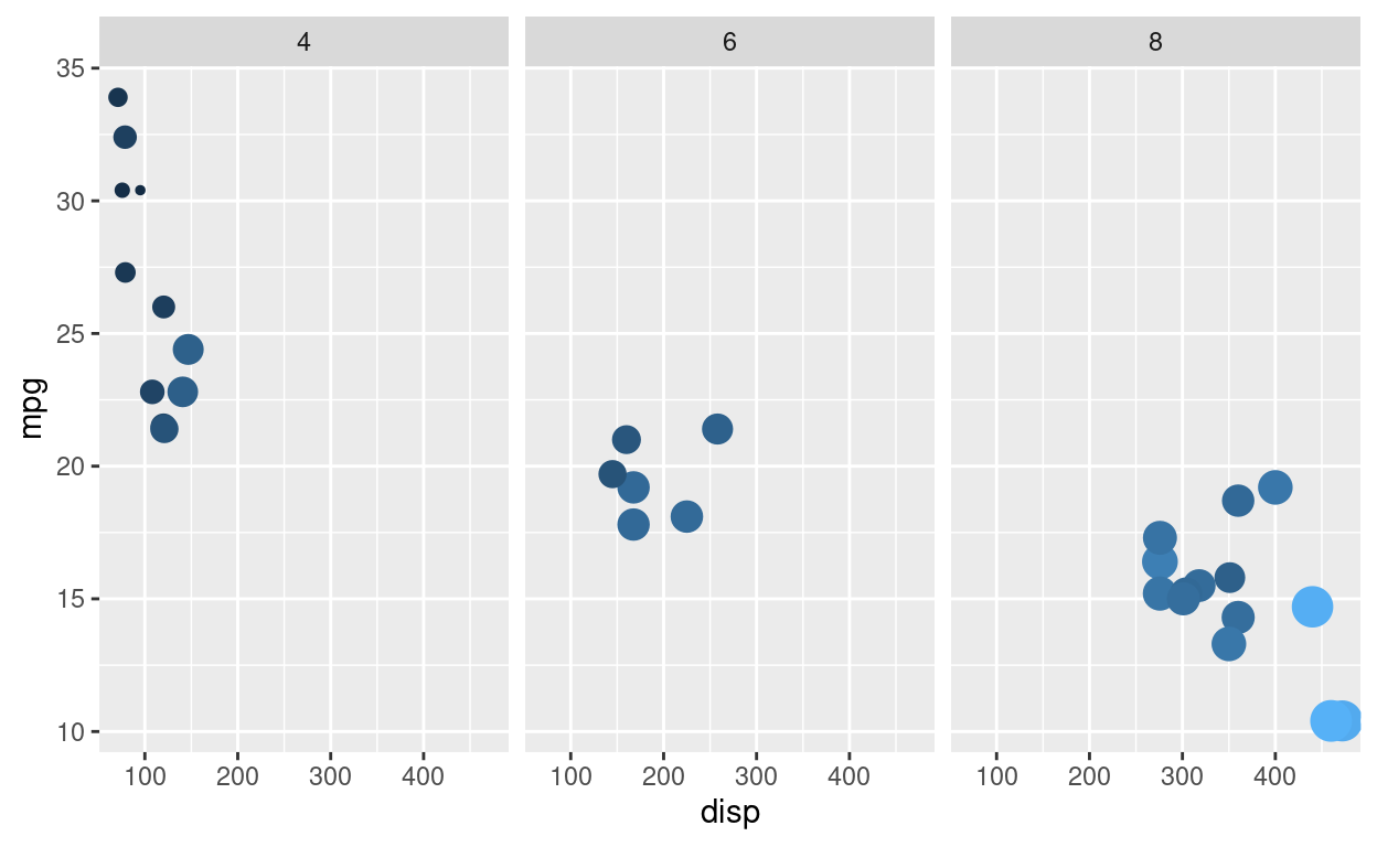 Now that we have created this graph suppose we want to plot the relationship between horsepower and mpg in a similar fashion. One option is to write the samy syntax once more and then change the y value to “hp”. Or you can write a function to automate the process.